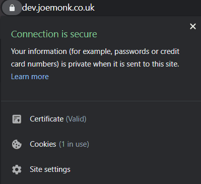 My previous portfolio website was hosted in an S3 bucket, which I wanted to continue with due to both ease and price, but every site now has SSL and I wanted to add it to this site too. As with most things AWS, it was a pain to figure out and all of the docs didn't quite work. S3 buckets can't be served via HTTPS, so you need to route them through Cloudfront. Start with the AWS Certification Manager in "us-east-1" - this is important, Cloudfront will not use any other region - and create a certificate for the domains you want. I created one for both "dev.joemonk.co.uk" and "joemonk.co.uk" - I used to so I didn't have to use "*.joemonk.co.uk" and I could treat them as different sites. With that, in Cloudfront, create a distribution that points to the full bucket, not what they fill in for you, e.g. "domain.s3-website-eu-west-1.amazonaws.com" and have the extra CNAMES as the hostname. With this deployed you can then change the alias for the route 53 hostname to the Cloudfront domain. The www forwarding buckets can also be forwarded only to the https standard domain bucket, which is quite nice and probably unnecessary with Cloudfront doing the heavy lifting.